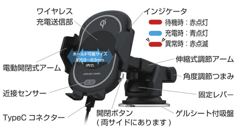 ワイヤレス充電器 自動開閉ホルダー KW-7 置いただけで充電可能!自動でスマホを固定 シガーソケット充電 USB充電 タイプC 車 充電式 スマホホルダー
